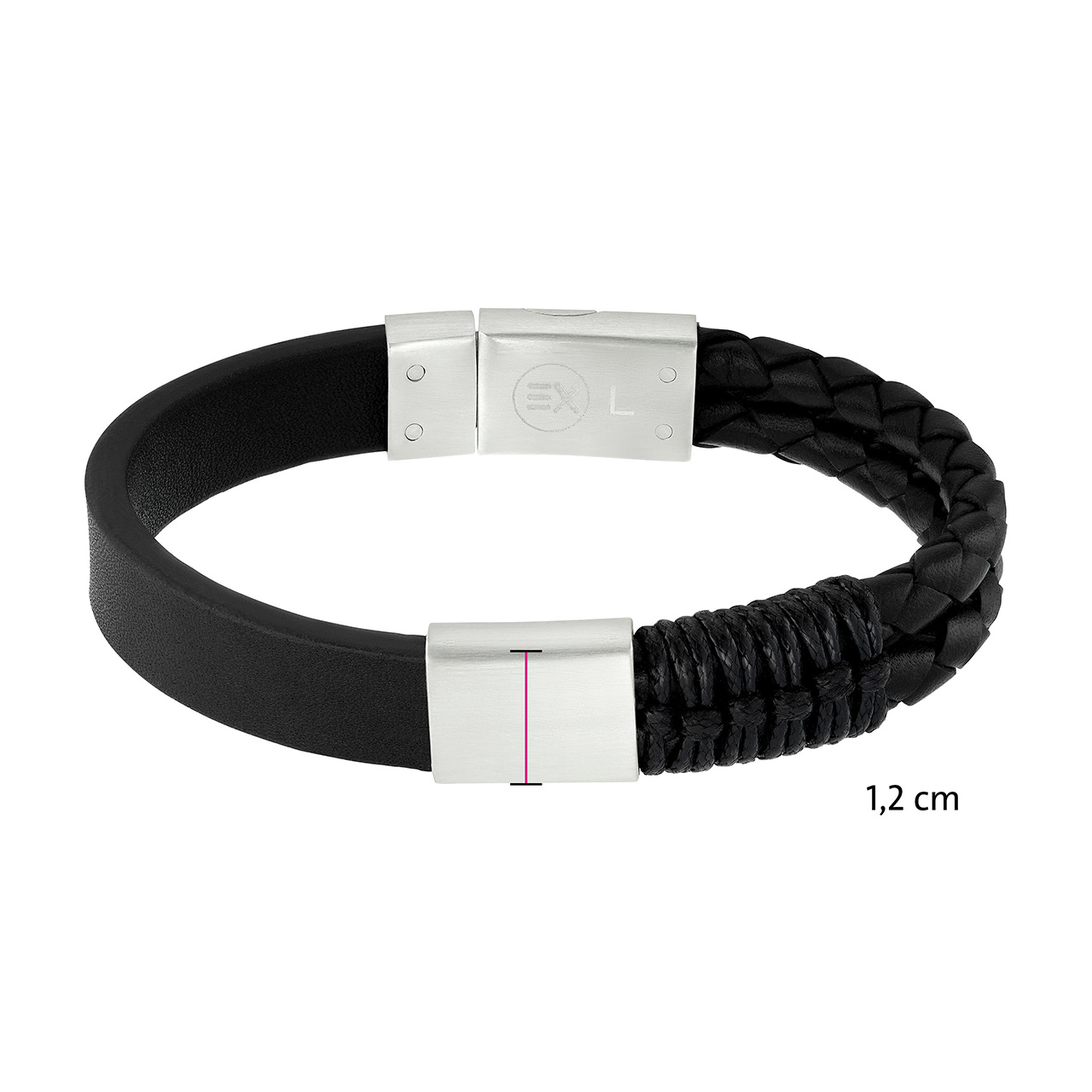 Oțelul inoxidabil cu finisaj mat şi piele de culoare neagră: această combinație modernă de materiale și culori face din această brățara pentru bărbați accesoriul perfect pentru activităţile de zi cu zi. Brățara, care dispune şi de un element de cupru şi magneţi cu un plus de putere, poate fi combinată în diverse moduri cu alte brățări şi va atrage mereu privirile celorlalţi.
