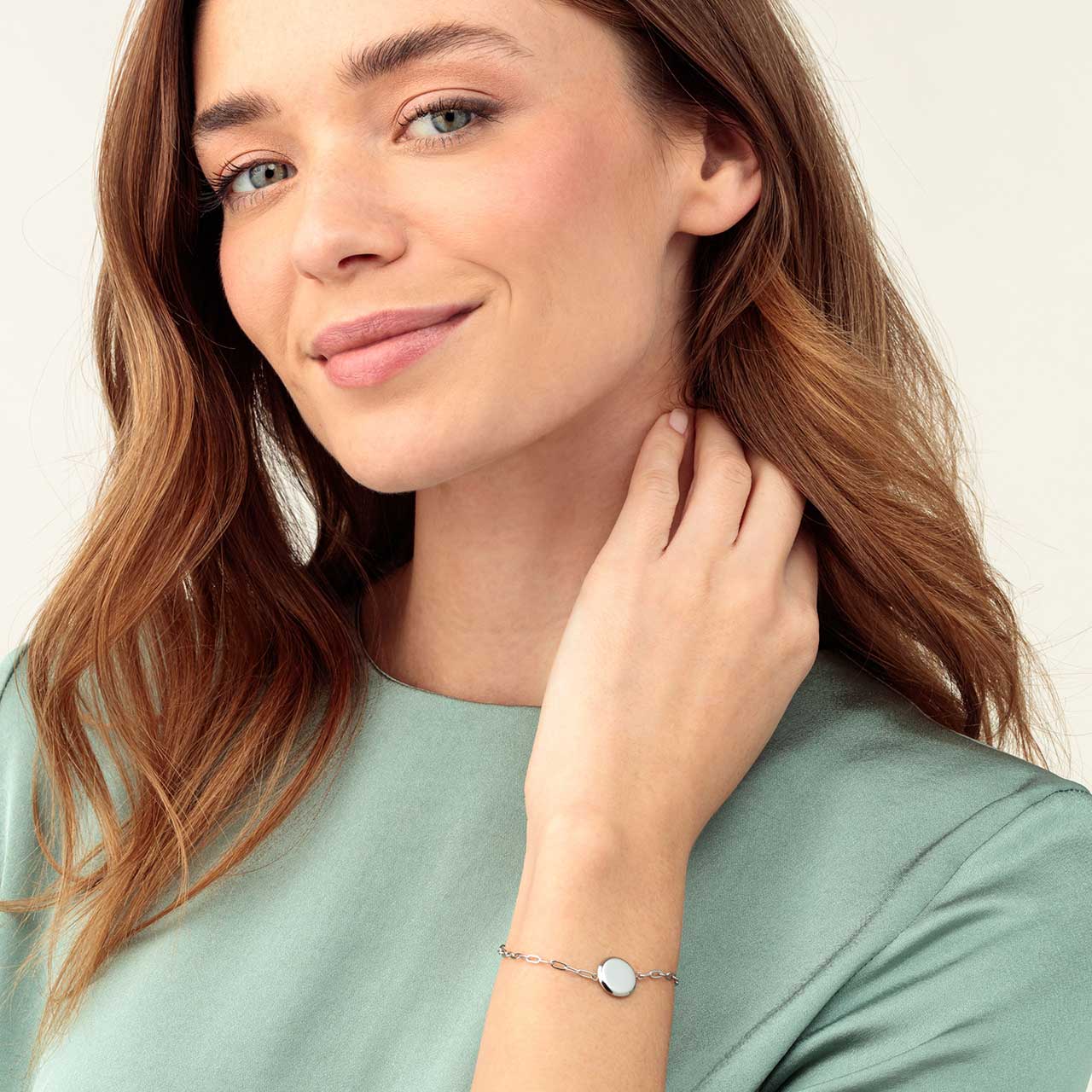 Această brățară magnetică se remarcă prin asptecul său modernă și minimalist. Este foarte ușoară și delicată și se potrivește perfect pe orice încheietură. Elementul central realizat din oțel inoxidabil cu un deosebit finisaj lucios poate fi personalizat cu o gravură – putând face obiectul unui cadou pentru tine sau pentru cineva drag. De asemenea, permite o gamă largă de opțiuni de combinare cu alte bijuterii.