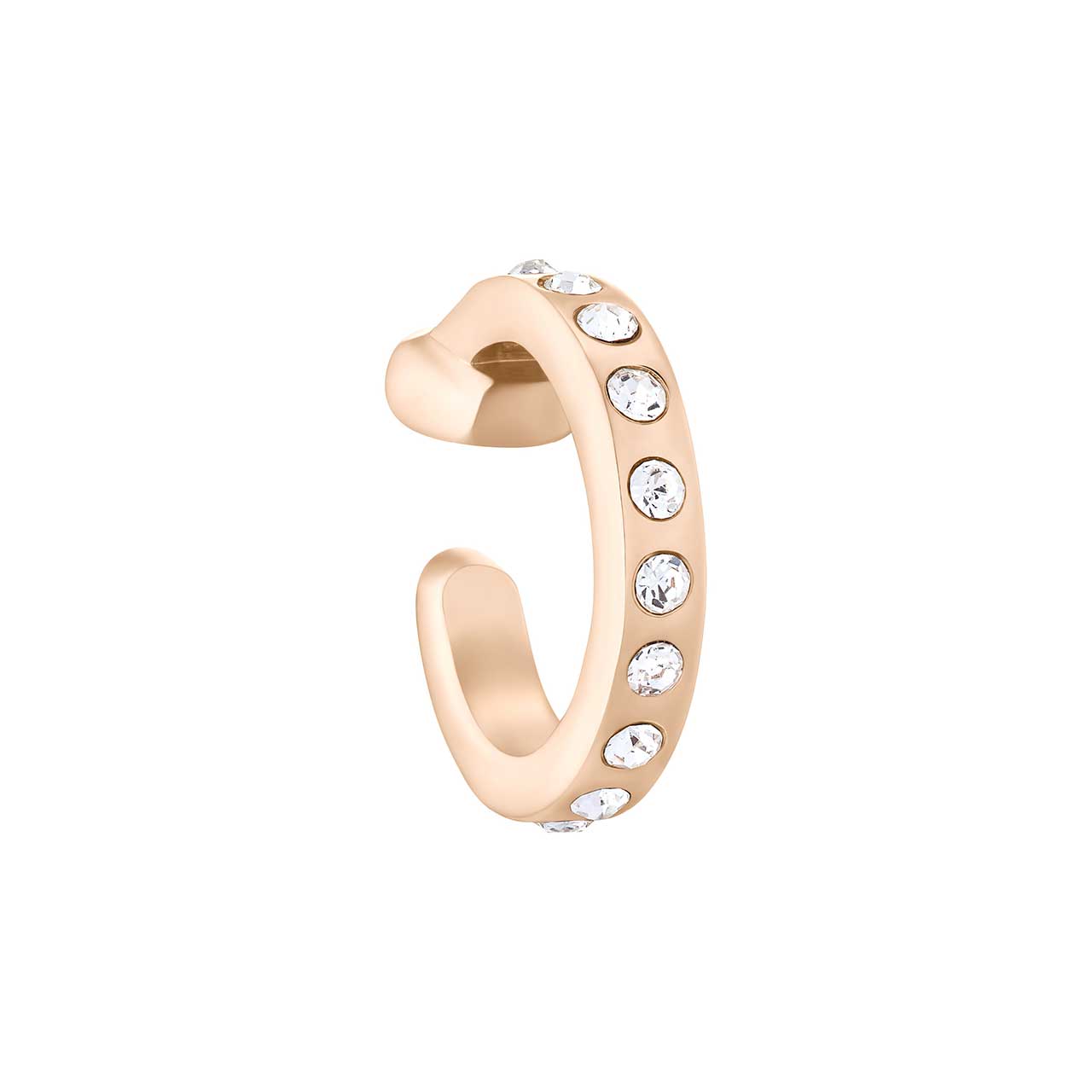 Datorită designului clasic, acest cercel pe ureche poate fi combinat foarte bine cu alte tipuri de cercei – de exemplu, cu cercei tip picătură sau cercei. tip stud. Accesoriul se remarcă şi prin numeroaselor cristale care strălucesc minunat, evidenţiate foarte bine şi datorită deosebitului finisaj lucios al oţelului inoxidabil. Produsul se achiziţionează la bucată.
