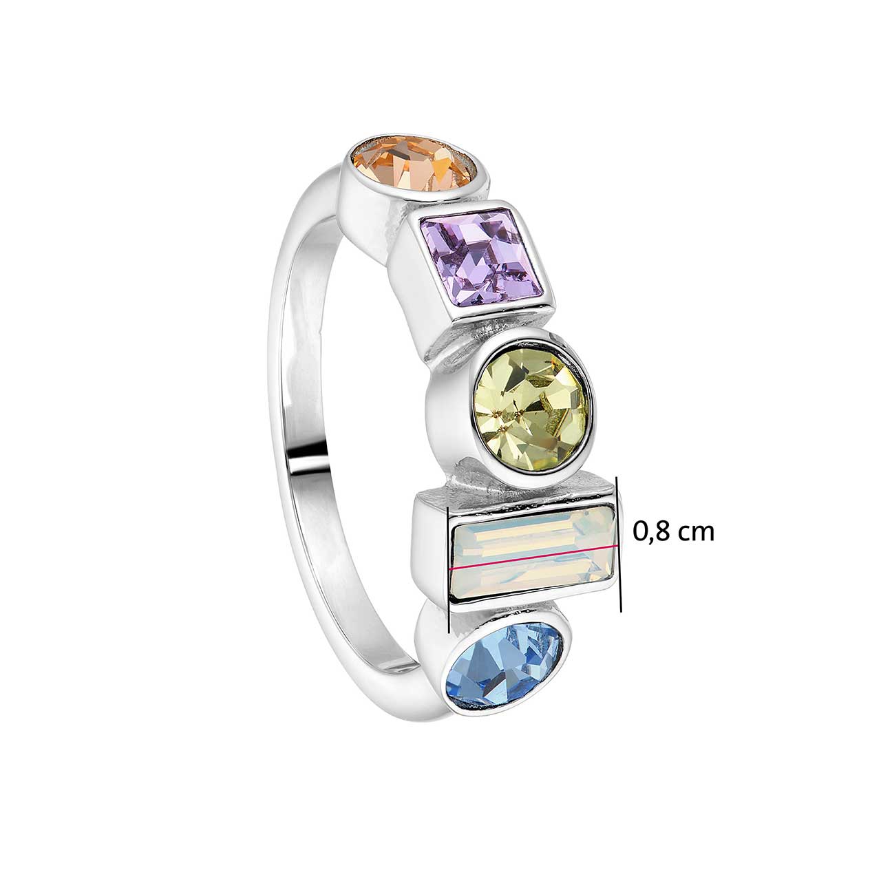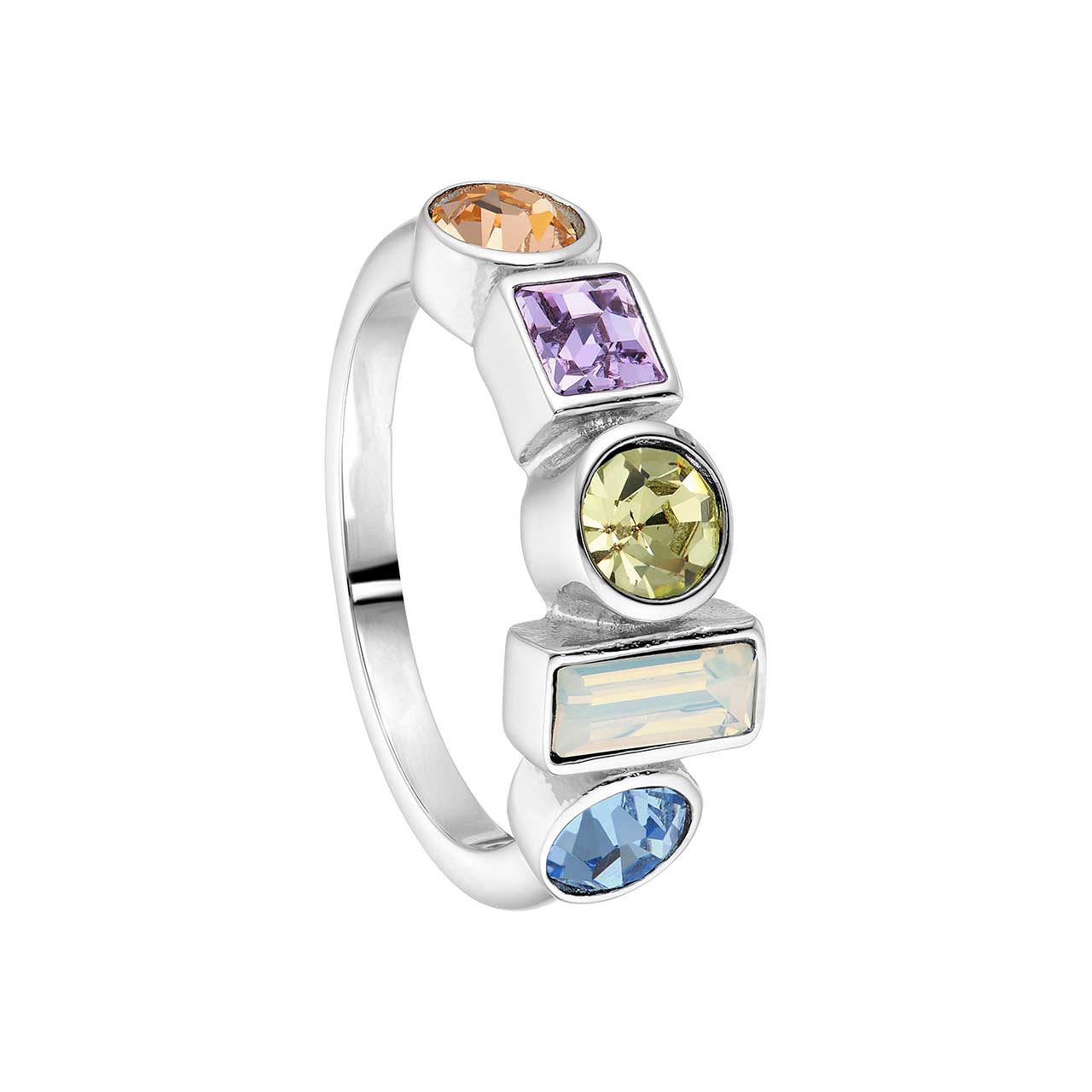 Căutați un inel magnetic neobișnuit în culori pastelate? Atunci această bijuterie este alegerea potrivită. Bijuteria este ornată cu cristale de diferite forme în nuanţe de pastel (jonquil, piersic deschis, opal alb, violet, safir deschis), perfect coordonate, care fac ca inelul să strălucească delicat.