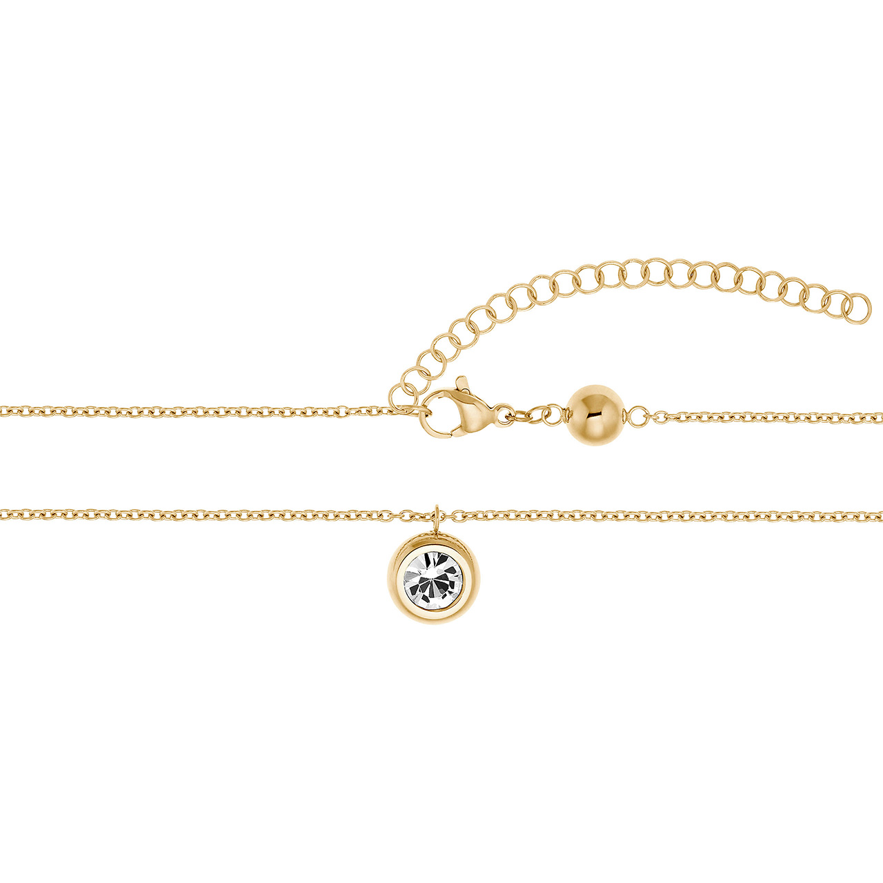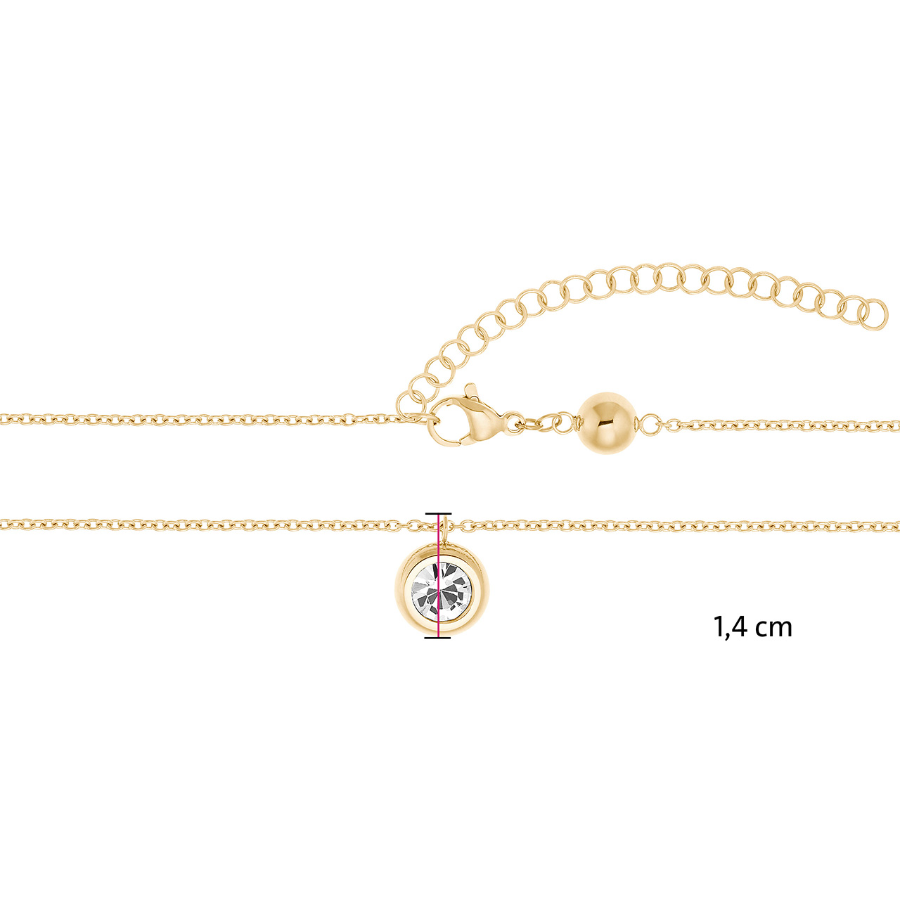 Cauți un accesoriu de zi cu zi pe care să-l poți combina și de care să te bucuri în fiecare zi? Atunci acest colier placat cu aur, cu un cristal solitar strălucitor, este cu siguranță potrivit pentru tine. Lanțul delicat poate fi prelungit sau scurtat în funcție de preferințele tale personale.