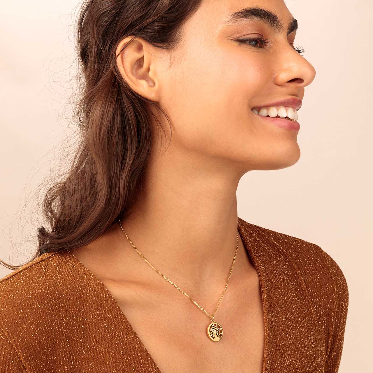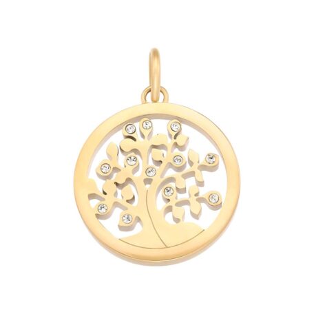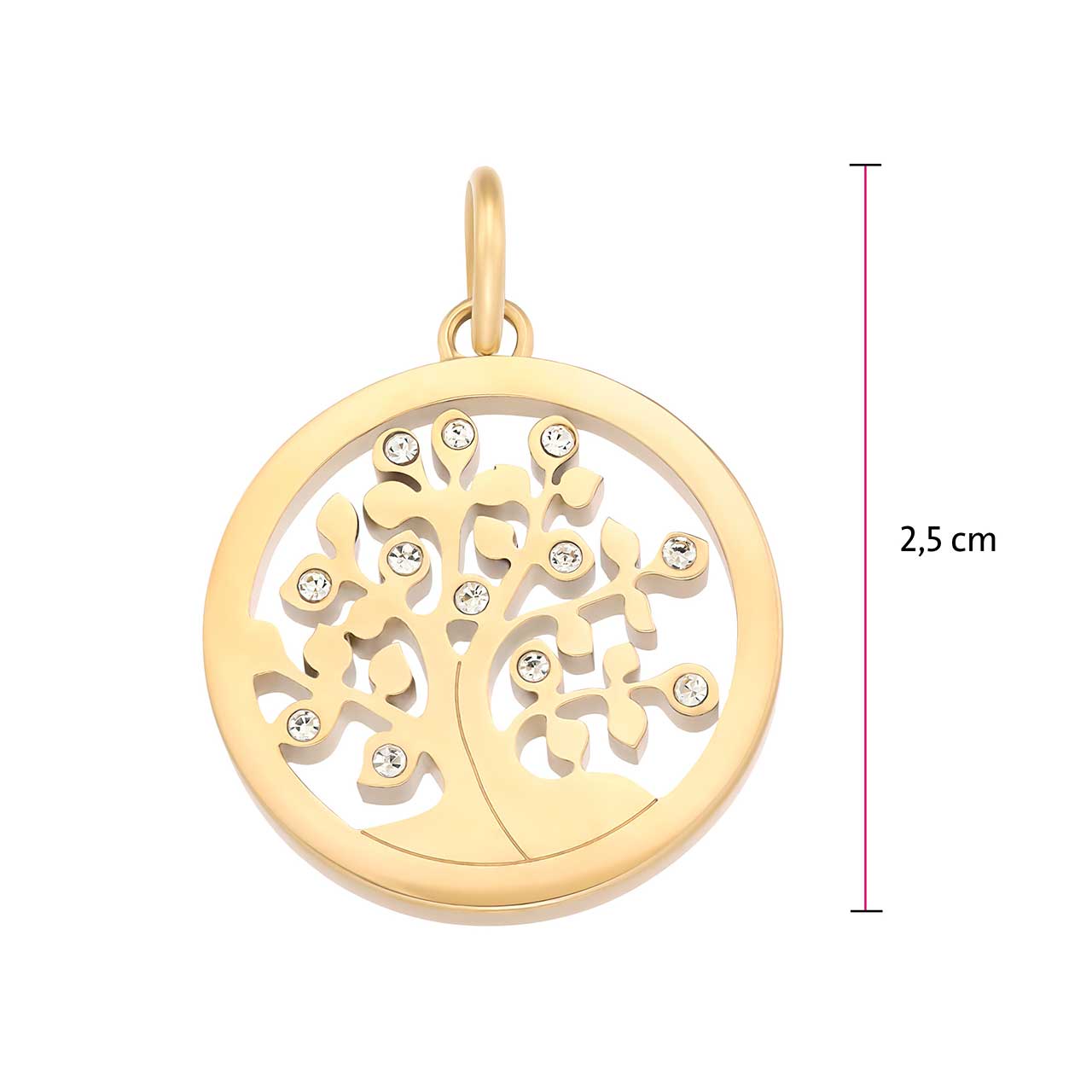 Simbolul arborelui vieții reprezintă forța interioară și echilibrul, ceea ce face din acest pandantiv placat cu aur un companion foarte special în viața de zi cu zi. Această bijuterie este de asemenea potrivită ca dar pentru cineva drag. Pandantivul este fabricat din oțel inoxidabil cu finisaj lucios și este decorat cu mici cristale care emană o strălucire delicată.