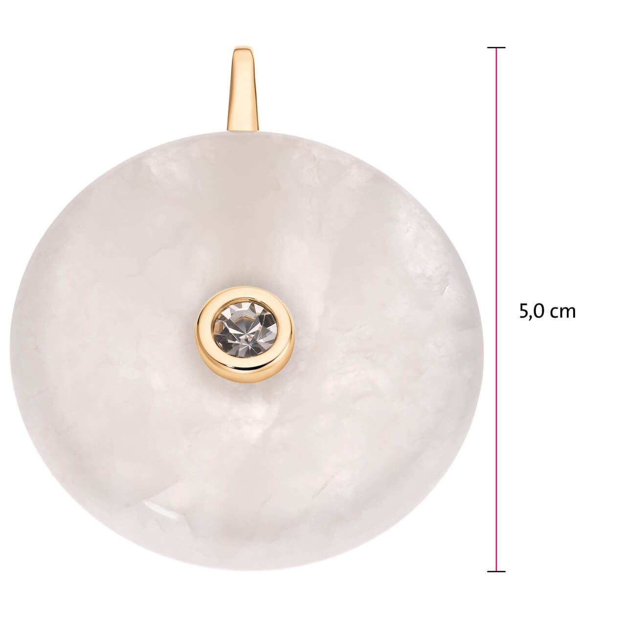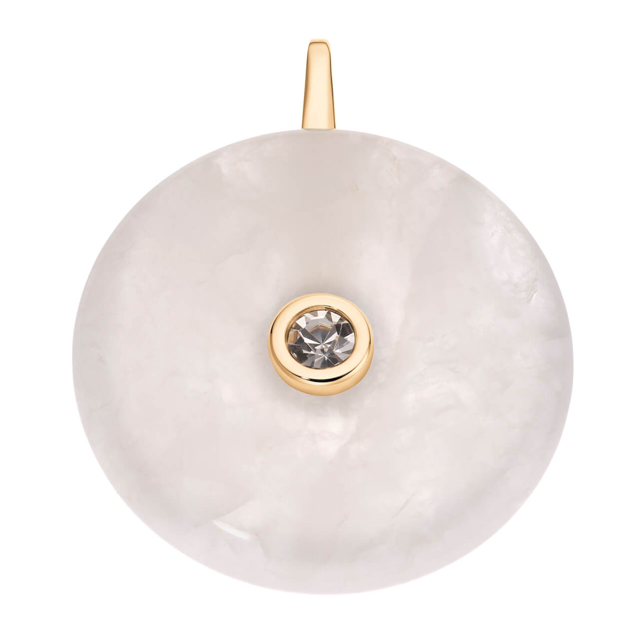 Un pandantiv impresionant, realizat din cristal de stâncă, în formă de disc curbat, decorat în centru cu un cristal clar și strălucitor. Acest accesoriu magnetic este o adevărată piesă statement, care pune în valoare orice ținută prin frumusețea sa pură.
